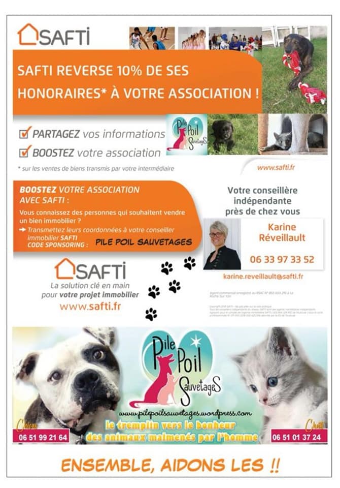 - SAFTI (85 et ses environs) – Contactez Karine Reveillault si vous cherchez à vendre votre bien. Pour toute vente réalisée, 10% des honoraires nous sont reversés